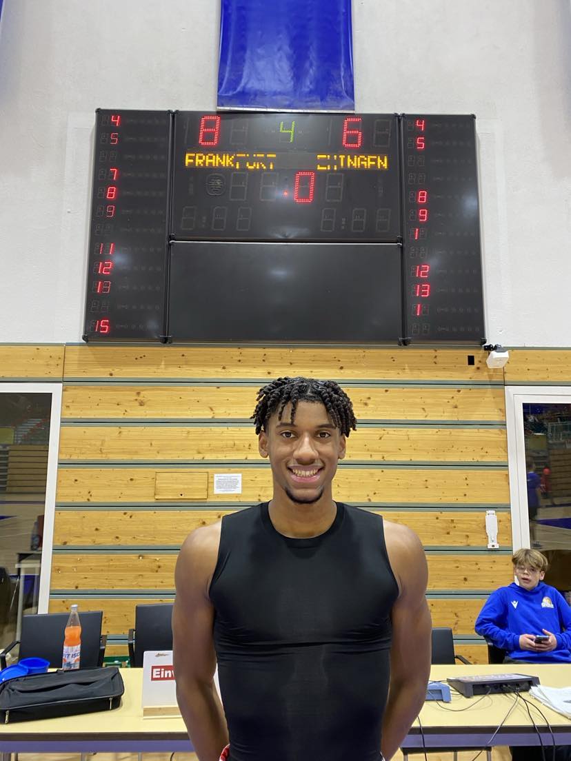 In the third quarter Eintracht Frankfurt Skyliners totally broke open the game scoring 28 points allowing 10 points less than in the second quarter and led by as much as 30 points and led by 22 points after 30 minutes. Frankfurt began with a harsh 13-4 run to lead 58-39. In the run, Frankfurt received massive production from sharp shooter Maximilian Peters (206-F-2007) who sunk 3 three pointers and Omog was as aggressive as always making 2 lay in´s on account of his quickness and athleticism. After a Davis off balance jumper, Frankfurt was at it again launching their next lethal run scoring 13 unanswered points to lead 71-41. In the run, Frankfurt got added support from Peters who supplied 5 points and his fourth three pointer of the quarter, while Edoka also got into the action scoring twice using his mid range game and made a reverse lay up while Mousa also scored. That basketball is a game of runs is so secret as Team Urspring weren´t fazed by that Frankfurt run and closed out the third quarter with a swift 10-2 run to trail 73-51 after 30 minutes. In the guests run, they were aided by 2 three´s from Schoentgen and Pildner. “We didn´t come in with the mind set. We just weren´t there mentally”, stated jeno Pildner. “We did a good job finding the right guy with Peters who got hot and just continued to give him the ball. We have no ego´s. We just give the guy who has the hot hand the ball. And Peters is a good shooter. We played at a high intensity at both ends and got to the free throw line”, said Namori Omog. Eintracht Frankfurt Skyliners shot 56% from the field and 50% from the parking lot and had 26 rebounds and 18 turnovers while Team Urspring shot 42% from the field and 35% from the parking lot and had 21 rebounds and 22 turnovers.