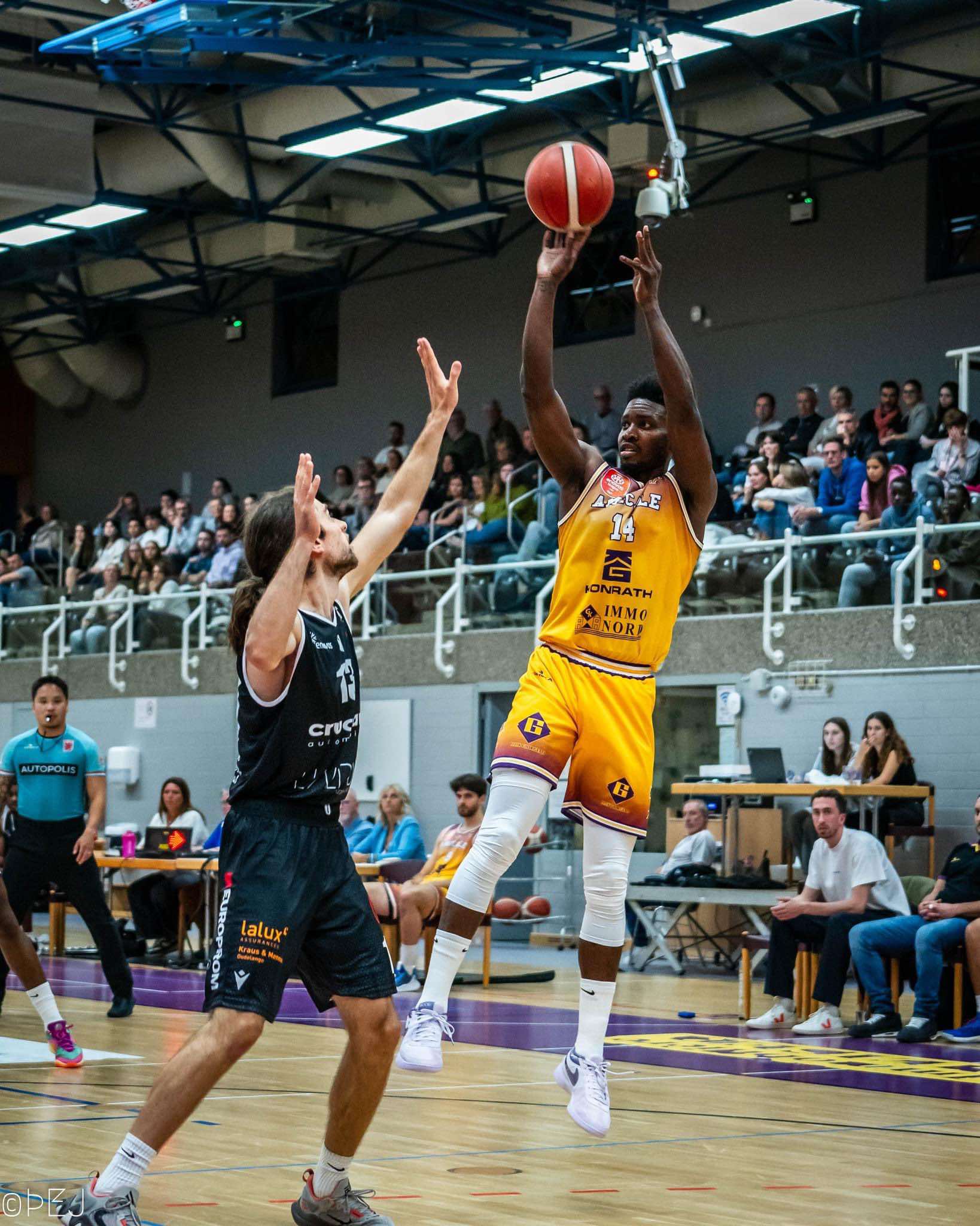 A little more than 2 years ago German basketball fans in Germany witnessed an incredible JBBL (U-16) semi final between Alba Berlin and the RheinStars Cologne. It wasn´t Larry Bird vs Dominique Wilkins, but Matthieu Grujicic of Alba Berlin (35 points) and Davi Remagen of Cologne (41 points) that offered an incredible scoring battle that showed once again how much talent is in Germany. These two 16 youngsters played the game they love and showed absolute no fear playing as if they were all alone on a court. But there was one more player on the court who had just as much talent, but was a bit in the shadow with Kenan Reinhart (194-SG-2007) who supplied 16 points in the 84-79 loss to Alba Berlin. 2 years later both Grujicic and Remagen are playing in the NCAA and profiting from NIL while Reinhart is in Germany playing in the Pro B for the Dragons Rhondorf. All 3 guys have gone separate ways and are on a mission to continue to develop further. All 3 have some pressure, but for Kenan Reinhart it is a kind of pressure that he can live and deal with. Last season he averaged 3,0ppg in 10 minutes. I can imagine he will average 20 plus minutes this season and will have to step up as a teenager in the Pro B. “I make a lot of pressure for myself, because I have high expectations of myself. My season was unacceptable last season. I want to make the next step so I need to prove myself in the Pro B. I really like this pressure, because I need it to reach my full potential”, warned Kenan Reinhart.