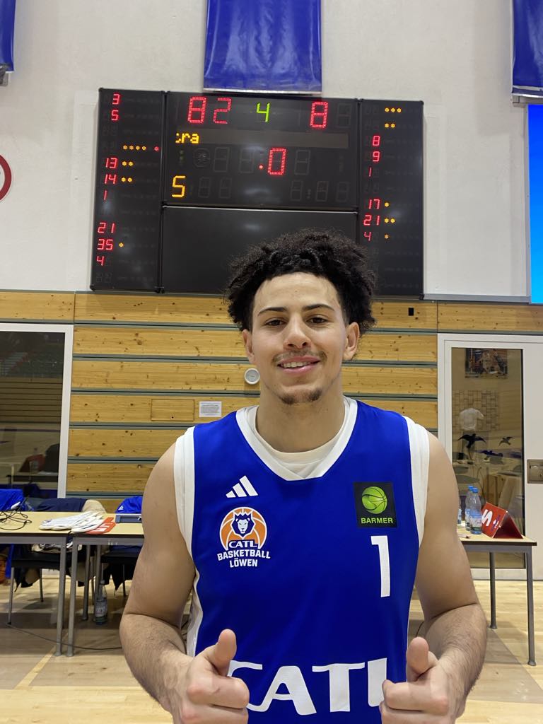How different the season of the Skyliners Juniors could have been had they not had had injury woes in the first month and they had found a way to win games at home better (1-4). But that is all in the past as the team simply needs wins to get up higher into the standings as they were resting in 11th place. They met last placed Basketball Lowen Erfurt who were sitting in the Pro B cellar. Sometimes records do disguise certain things as this seemingly lowly team were first in points scored and rebounds, but that didn´t get them a medal as they allowed 93 points per game and were second in turnovers in the Pro B south. The team featured the always potent Paul Albrecht and talented German Musa Abra and work horse Noah Kamdem. The Skyliners Juniors came into the game with a 3 game losing streak and last weekend had found no offensive rhythm losing 70-61 against Langen. They were facing a must win in their own living room. Despite an incredible shooting clinic with 10 three´s and 35 points by the universal genius Ivan Crnjac, the Skyliners Juniors weren´t able to secure the win as the CATL Basketball Lowen won 86-82. Frankfurt had to put up with the strong big man duo of Albrecht and Kamdem and with Abra and Mitchell at the guard position and in the end it was Mitchell who made the game winner and free throws. “I felt like we played well as a team and hustled well. However our defense wasn´t always awake. It was tough defending against 2 dominant bigs and 2 talented guards. They showed what they could do on the court”, stressed Ivan Crnjac. They combined for 66 of the 86 team points. The CATL Basketball Lowen needed a win so badly and fought until the end with the great support of their fans who made the long trip. “It was an even game for the most part. Even when Frankfurt got a good lead in the third quarter, we never gave up. I think that we had the better energy at the end and were more active on the defensive end. Our fans were also a big help”, stressed Erfurt guard Musa Abra.